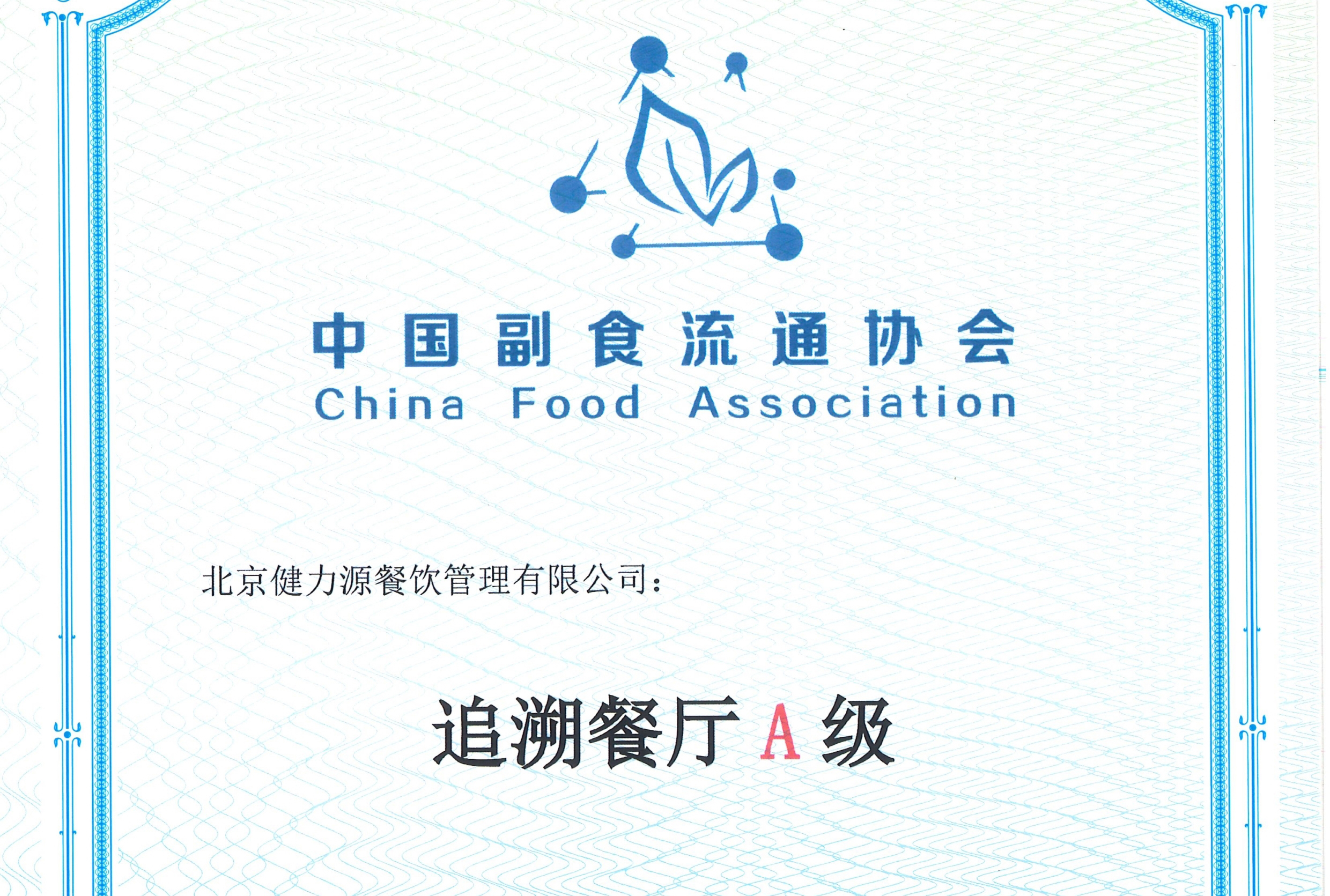 8月4日,中国副食流通协会食品安全与信息追溯分会公布了新一批追溯餐厅的评定结果,集团申报的四家餐厅(9号院·健力源餐厅,济南龙奥大厦·健力源餐厅,沈阳铁西宝马工厂·健力源餐厅,西直门南路1号(WJW)·健力源餐厅)均通过了“追溯餐厅A级”的评定认证。