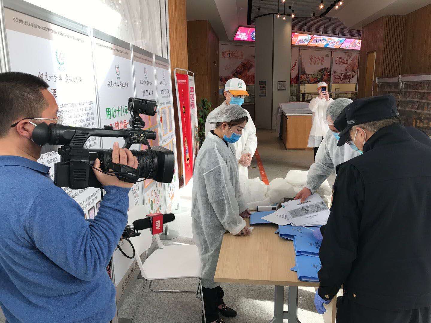 【3】3月18日,北京电视台协同朝阳区来广营城管执法人员前往默沙东餐厅进行检查采访,重点了解了疫情期间餐厅的供餐数量和供餐流程,餐厅员工的返京时间和隔离情况,并检查了餐厅的员工体温记录、通风消毒记录与疫情期间的防护措施。餐厅配餐
